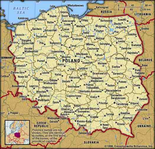 Major towns/cities: Lódz, Kraków, Wroclaw, Poznan, Gdansk,